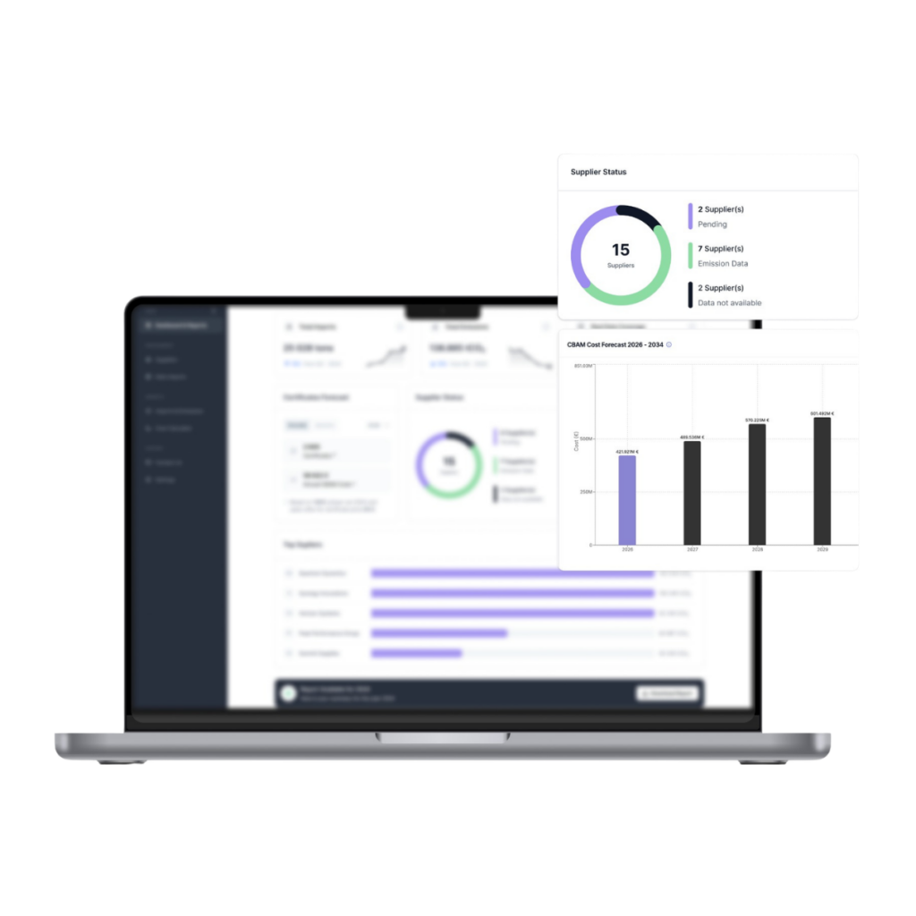 Wir unterstützen Sie beim Erwerb und der Verwaltung von CBAM-Zertifikaten –digital, effizient und nahtlos integriert in Ihre Berichterstattung. Mit unserer Hilfe können Sie die zukünftigen Zertifikatskosten präzise prognostizieren. So optimieren Sie Ihre Einkaufsstrategien, minimieren Risiken und passen Ihre Betriebsabläufe vorausschauend an.